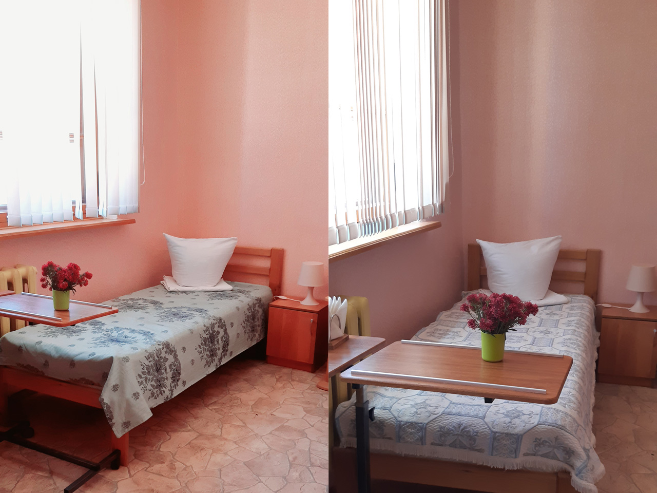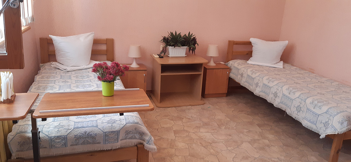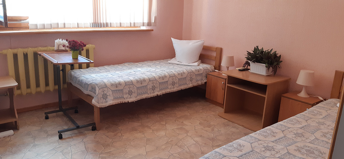 При поступлении в дом престарелых в Донецке, каждый пенсионер может выбрать для себя 1,2, или 3-х местную комнату. Каждая комната оборудована душем, санузлом, и необходимой мебелью. Кровати и мебель, которые располагаются в комнатах постояльцев, разработаны специально для людей преклонного возраста и инвалидов, что позволяет обеспечить самый высокий уровень комфорта.
